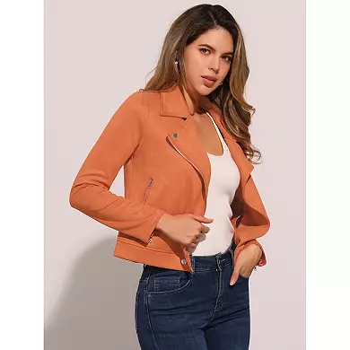 Women’s Fashion Faux Suede Jacket Long Sleeve Zip Up Moto Biker Jackets