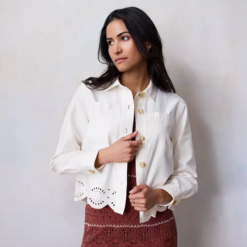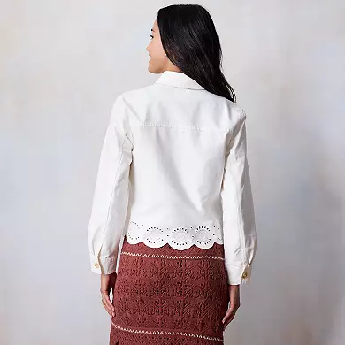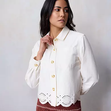 Women’s Fashion LC Lauren Conrad Femme Trucker with Eyelet Hem Jean Jacket