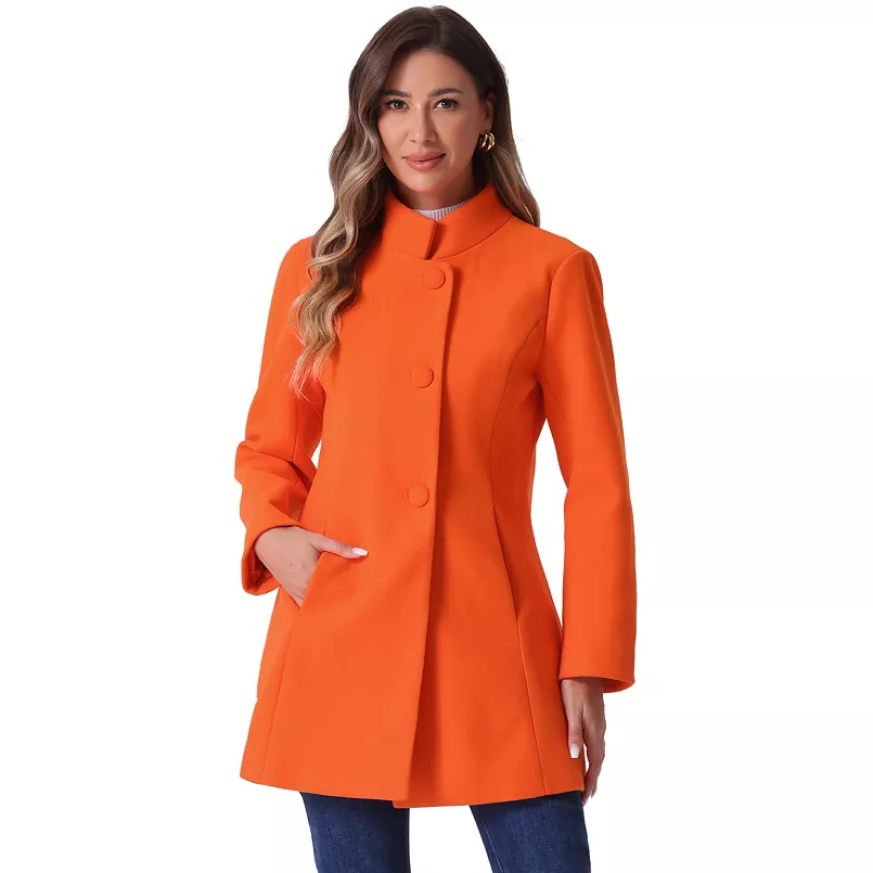 Mid-thigh Length, Stand Collar, Single Breasted, Slant Pockets, Fully Lined, Long Sleeve pea coat; Occasion: Work, Office, Casual, Coffee Shop, Daily, Date, Weenkend, etc, Peefect for winter fall, pair this long coat with kint top, warm cloths in cold weather; Style this fashion peacoat with blouse and pants for a warm and elegant look.